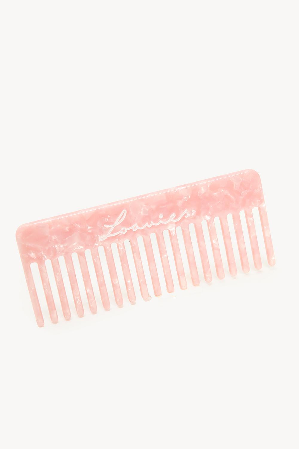 Deze lichtroze kam heeft een luxe textured design met het LOAVIES logo voor een chique touch. De brede tanden en handige grip zorgen voor comfort tijdens het stylen. Perfect om je haar te detanglen en te stylen voor elke gelegenheid.