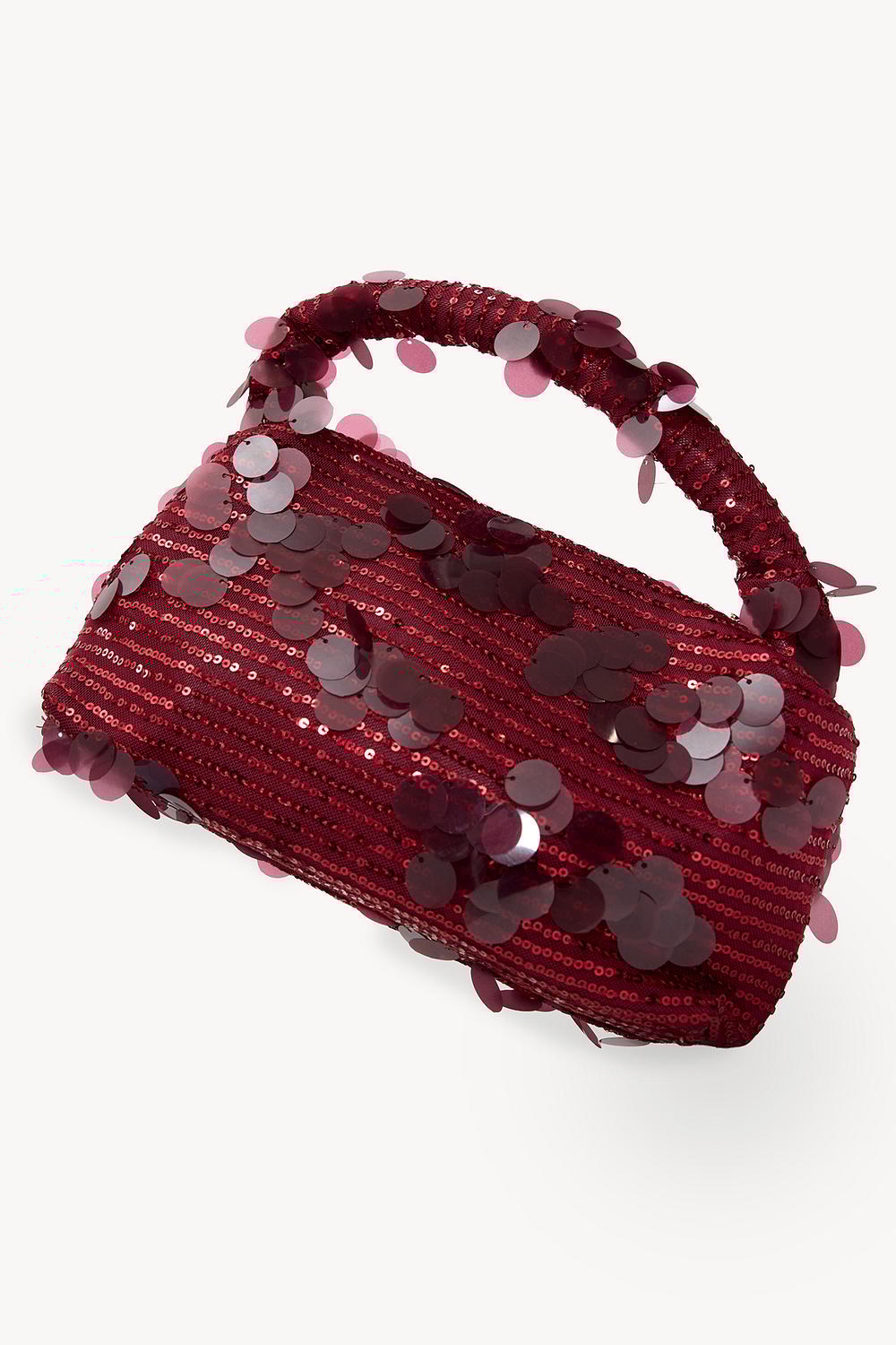 Deze bordeaux handbag heeft een opvallend sequin design met statement pailletten details all over. De compacte tas is voorzien van decoratieve ronde accenten die een extra glamorous touch geven. De handige draaghengsels maken deze bag perfect voor een girls night out of dinner date.