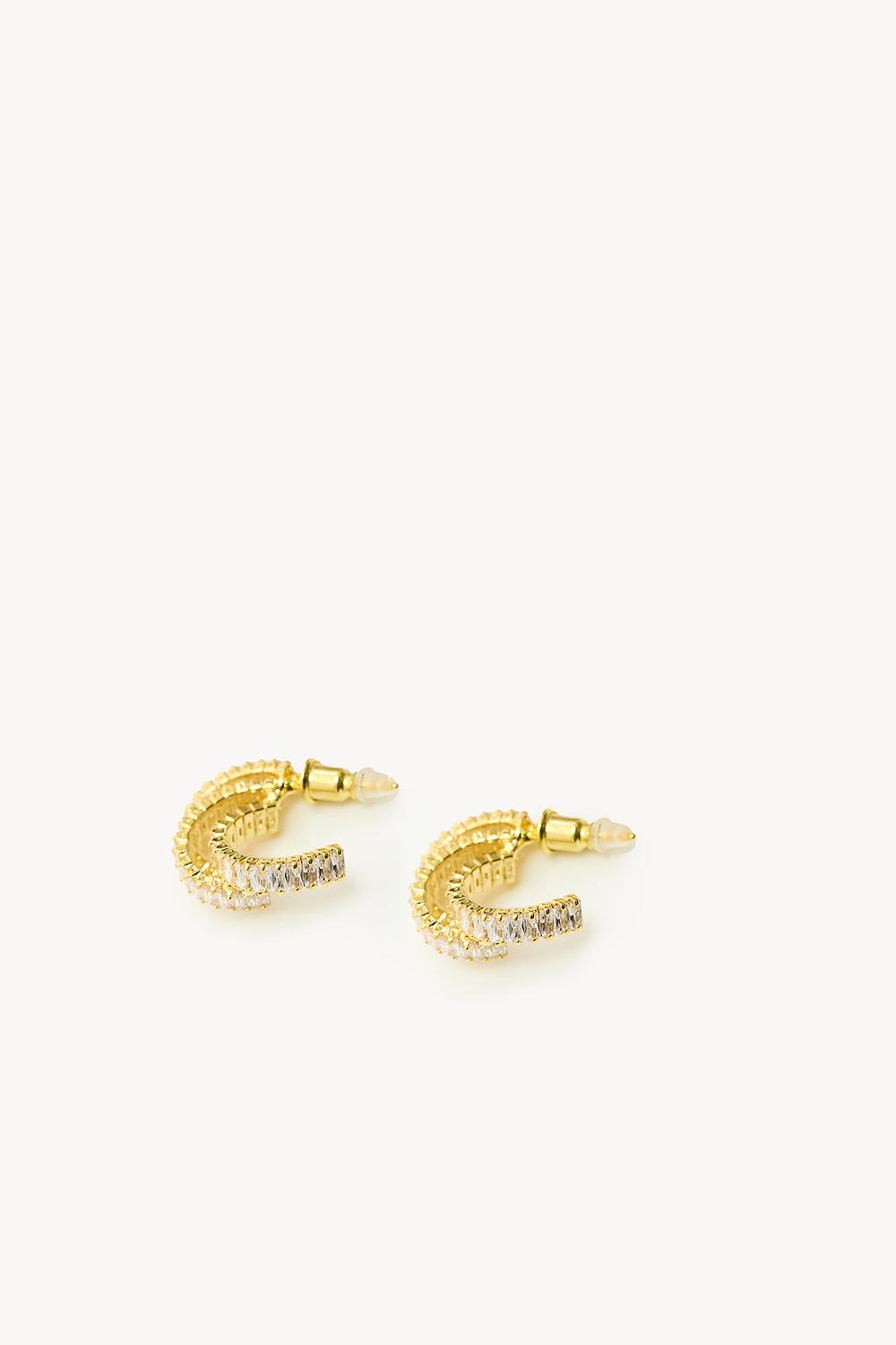 Gouden oorbellen met strass stenen EUR 14,99Deze gouden hoop oorbellen hebben een opvallend textured design met gedraaide details voor een luxe uitstraling. De chunky vorm met subtiele twist geeft deze earrings een moderne edge. Perfect om je look een instant upgrade te geven met een touch of gold.