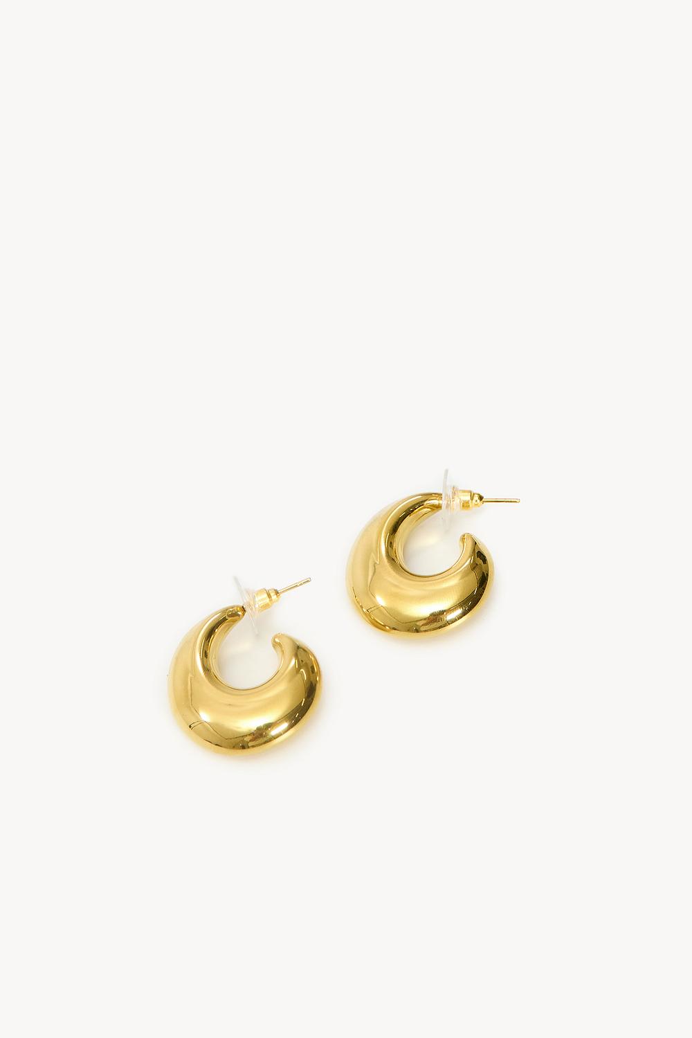 Gouden oorbellen EUR 14,99Deze gouden chunky hoop earrings hebben een luxe goldplated finish voor een statement look. De dikke hoops met glossy afwerking creëren een bold accent bij elke outfit. De 100% stainless steel basis zorgt voor duurzaamheid en een comfortabele draagervaring. Style deze earrings met een sleek updo voor een chique dinner date look.