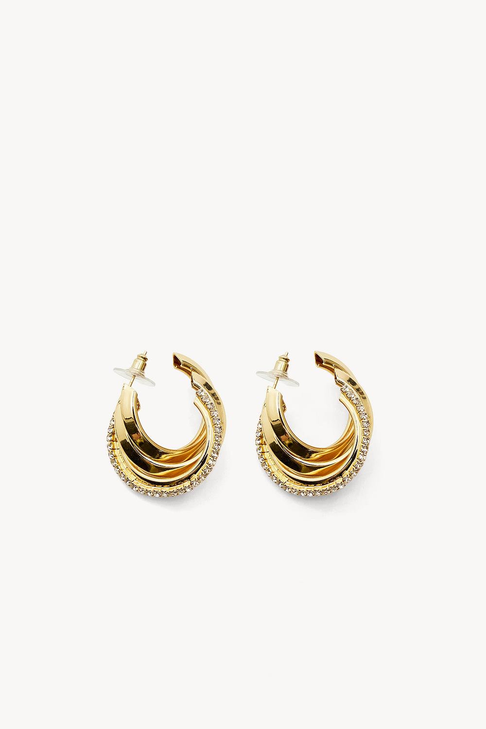Gouden oorbellen met strass stenen EUR 17,99Deze gouden hoop oorbellen hebben een luxe gelaagd design met subtiele textured details. De chunky vorm met meerdere lagen creëert een statement look die perfect aansluit bij de huidige sieraden trends. De warme gouden kleur geeft elke outfit een chique upgrade.