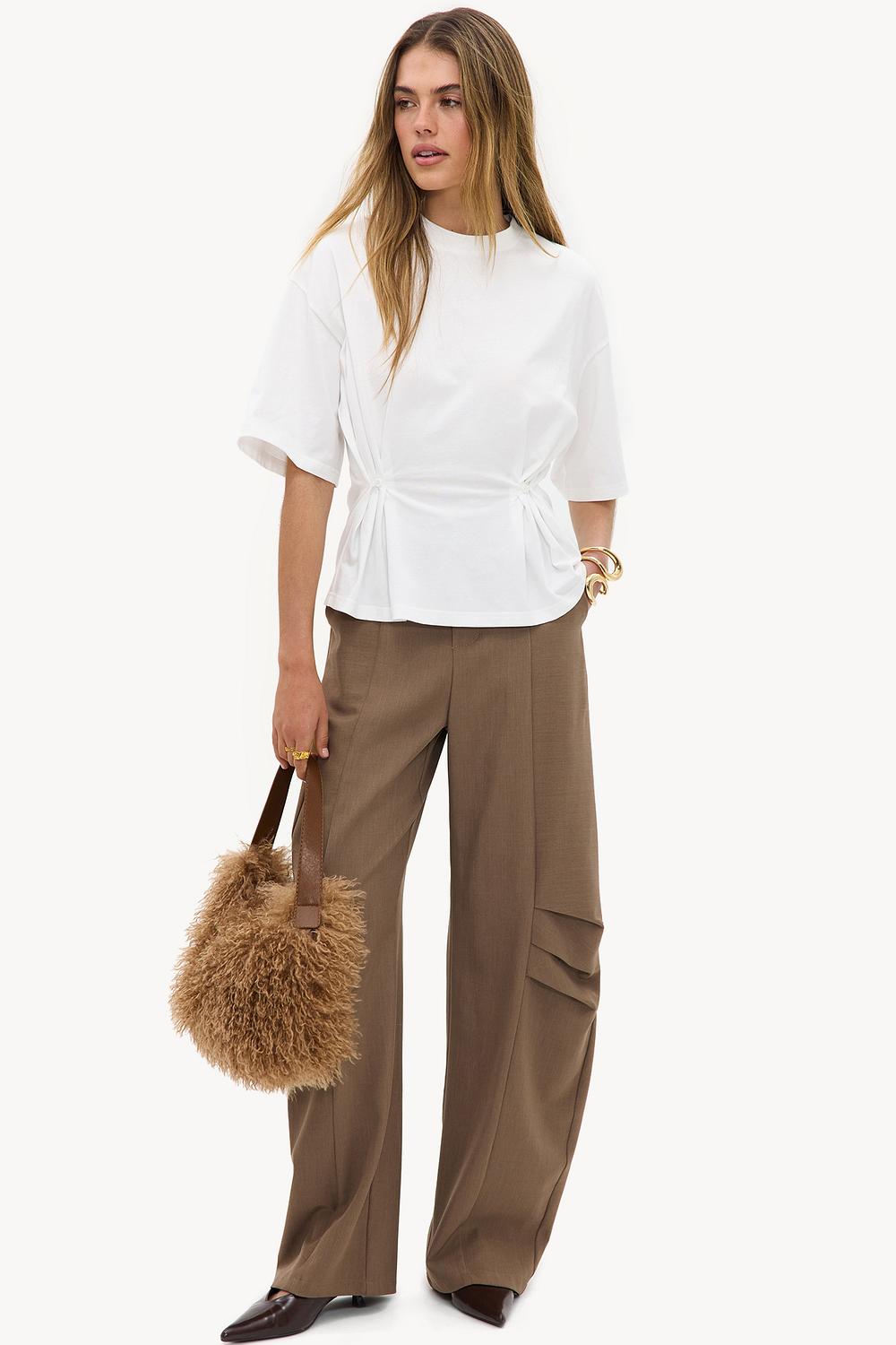 Wit getailleerd shirt EUR 29,99Dit witte oversized T-shirt heeft een statement tie detail aan de zijkant voor een moderne twist. De relaxte pasvorm met korte mouwen en crew neck zorgt voor een comfortabele draagervaring. De 100% katoenen kwaliteit geeft dit basic shirt een luxe uitstraling. Style dit shirt met wide leg broek voor een chique casual look.