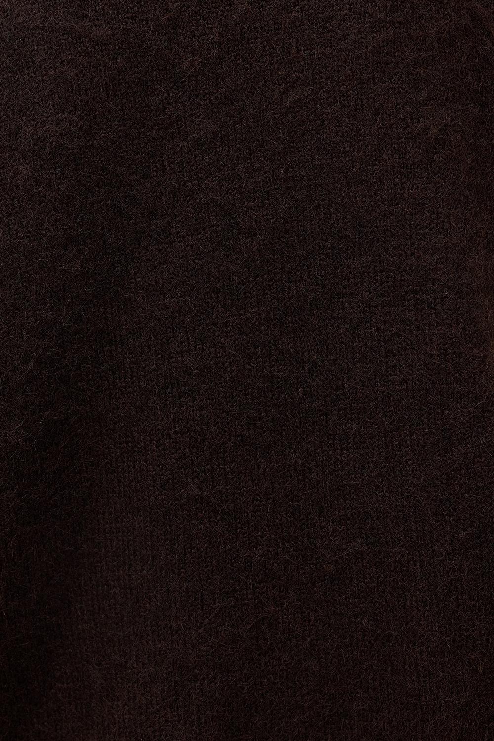 Deze donkerbruine knit jumper heeft een oversized fit met statement balloon sleeves voor een coole look. De mock neck en zachte textuur geven deze sweater een luxe uitstraling. De losse pasvorm met ribbed boorden creëert comfort en stijl. Style deze jumper met leather-look shorts en hoge laarzen voor een chique casual outfit.