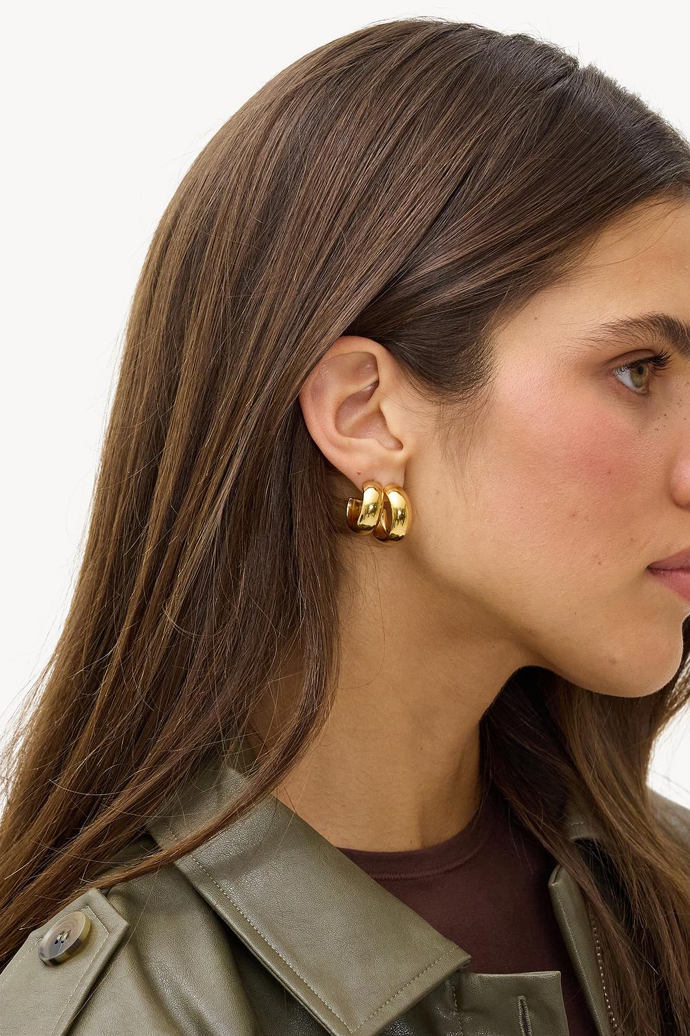 Deze gouden oorringen hebben een chunky design met gedraaide details voor een statement look. De goldplated stainless steel zorgt voor duurzaamheid en een luxe uitstraling. Perfect om je outfit een instant upgrade te geven.