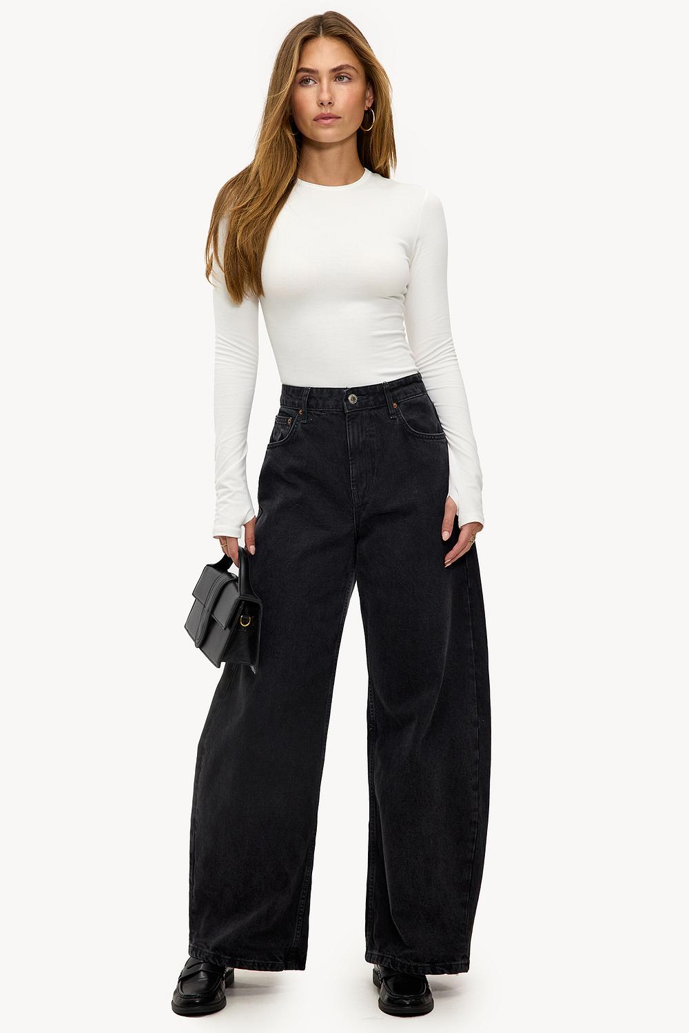 Deze offwhite longsleeve top heeft een strakke bodycon fit die de shape perfect accentueert. De ronde hals en lange mouwen met duimgaten zorgen voor een moderne twist. De stretchy kwaliteit geeft optimaal comfort en een nauwsluitende pasvorm. Style deze basic top met een zwarte wide leg jeans voor een chique casual look.