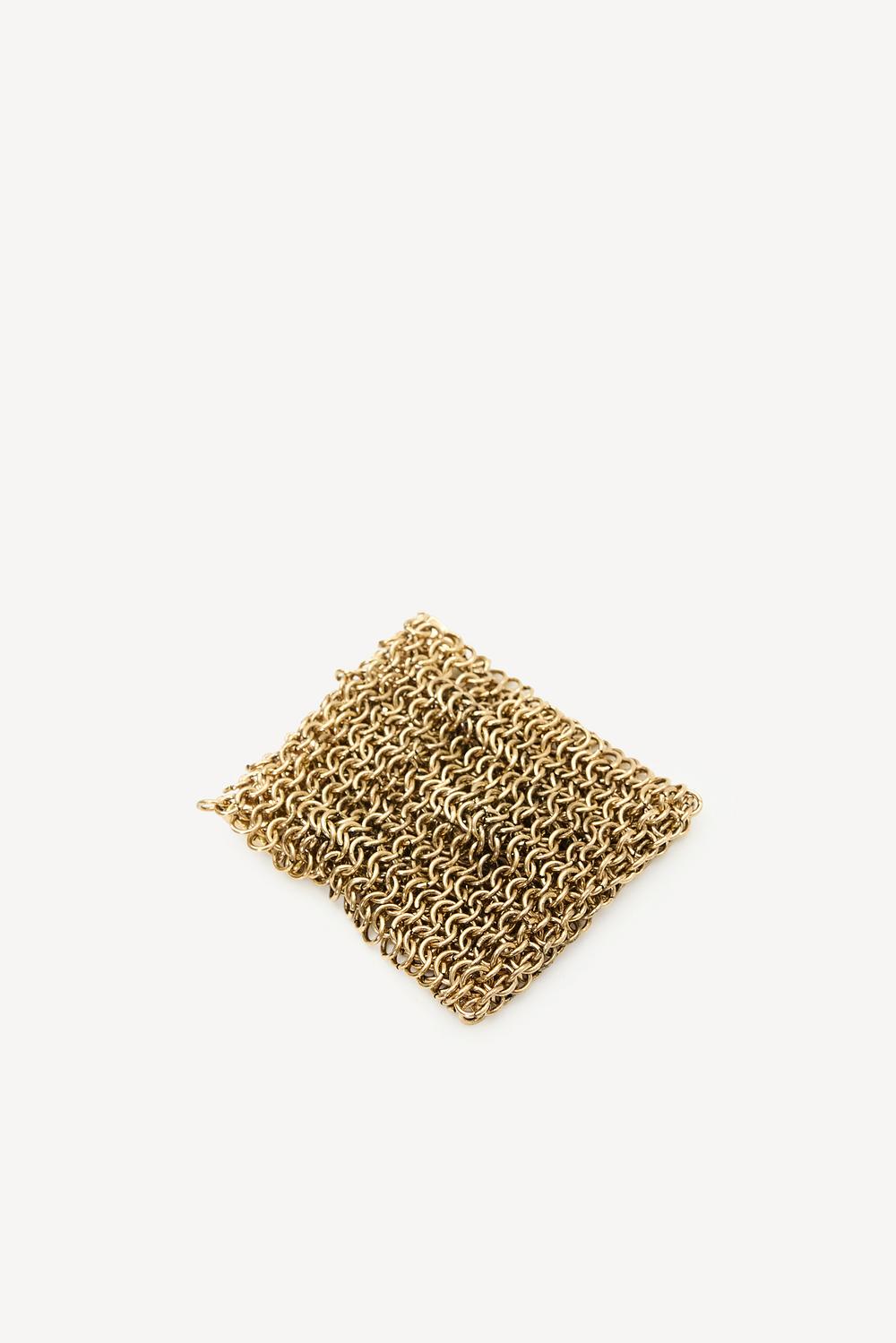 Gouden chain armband EUR 21,99Deze gouden chain armband heeft een opvallend chainmail design met fijne schakels voor een luxe uitstraling. De brede pasvorm met statement sluiting creëert een bold look aan je pols. De 100% metalen kwaliteit zorgt voor duurzaamheid en een high-end finish. Style deze armband met gouden oorbellen voor een complete golden hour look.